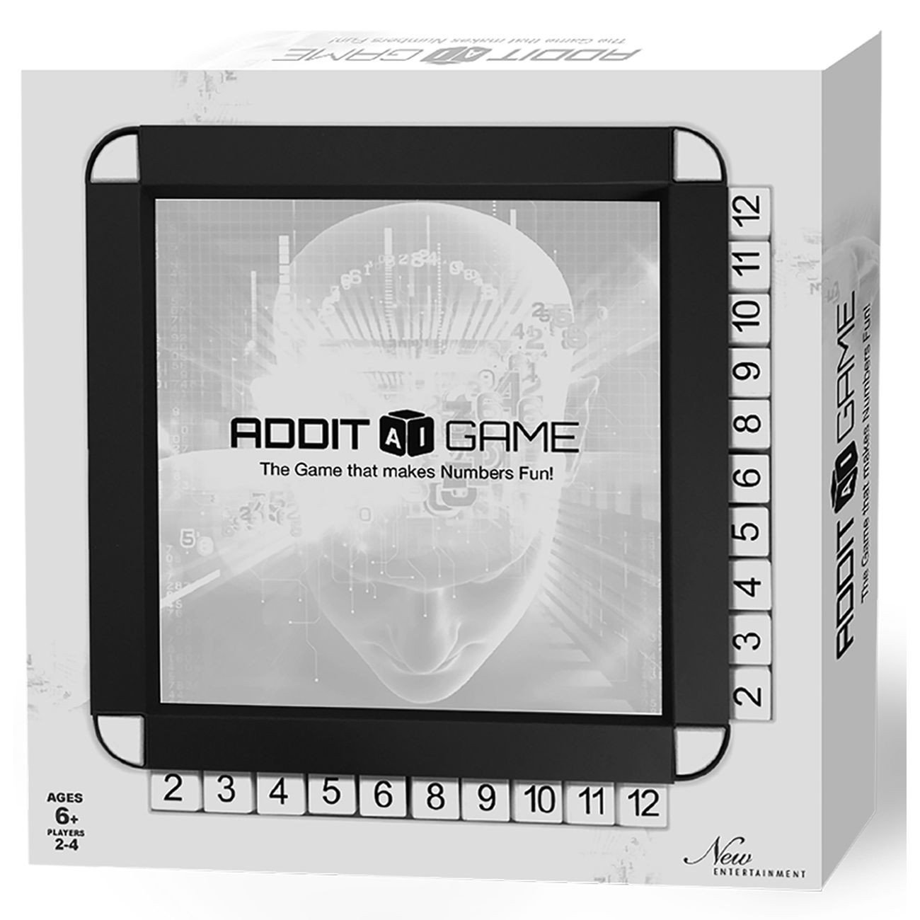 Addit Game. The game that makes number fun. The object of the game is to close all the numbers on your side of the board. This is done by rolling the dice, either add the dice up and push that number through or push through each number on the dice you have rolled. There are many different ways to play this great adding game. Includes game board, dice and rules.