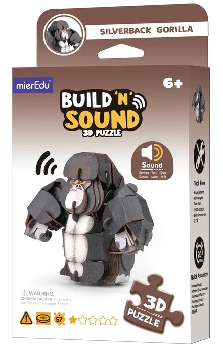 Build 'n' Sound, a 3D Silverback Gorilla Sound Puzzle. Featuring an integrated sound module, this puzzle emits lifelike animal sounds upon completion. This creatively designed 3D puzzle encourages hands-on exploration of animal anatomy, fosters learning with engaging facts, and enhances children's fine motor skills and patience. With intricate paper craft and an immersive play experience, children can enjoy a sense of accomplishment while learning in a fun and interactive way!