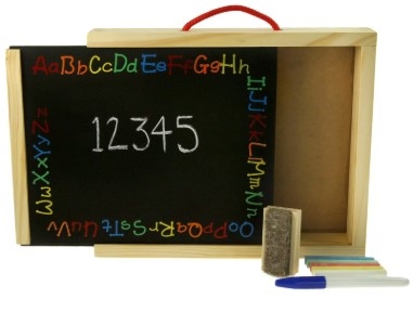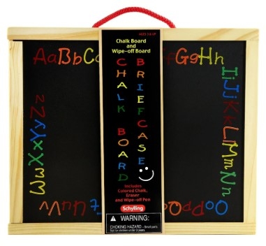 Schylling Chalkboard and Whiteboard Briefcase - Double-Sided Wooden Case with Storage Inside - For ages 3 and up