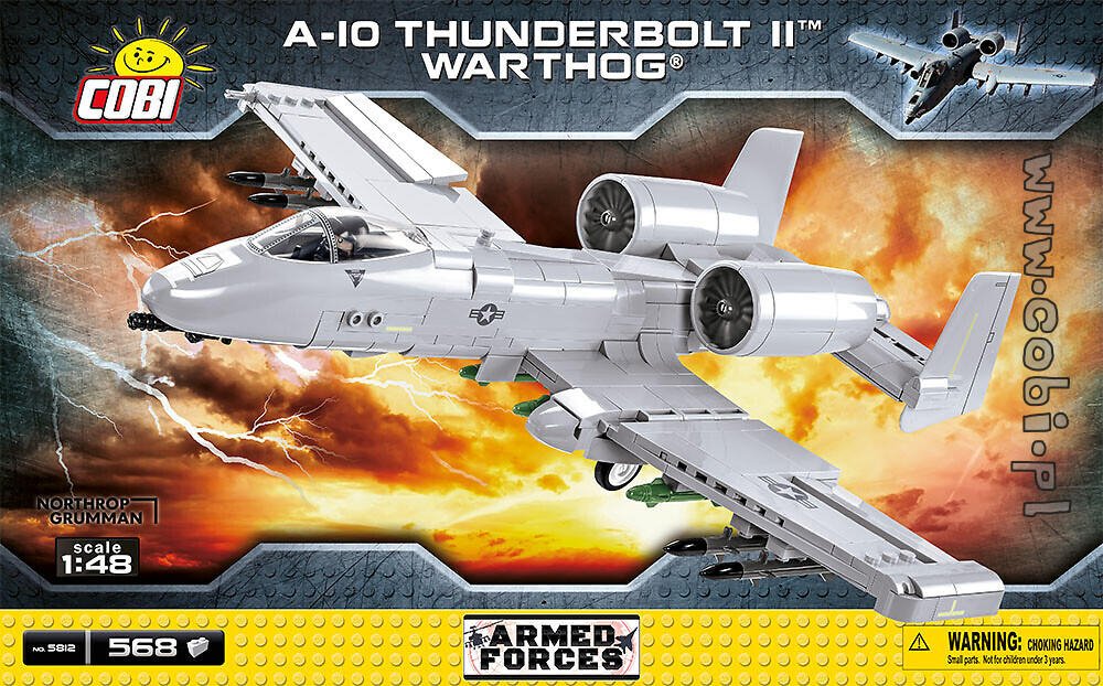 This new set from COBI utilizes 568 COBI building blocks to build an amazing US attack aircraft -- the A-10 THUNDERBOLT II™ WARTHOG®. The set has been designed with attention to detail and features all pad-printed decorations. There are no stickers in this set! The model was designed in 1:48 scale under license by Northrop Grumman. The set includes a simplified version of the minifigure that fits the cockpit. This beautiful plane with a block display and nameplate is an ideal set for fans of military, aviation and history. Regardless of the age of the builder, it will become a unique model in the collection!