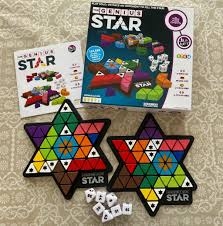 Race and become the star of the game! Think fast to solve the challenges before your competitor reaches the highest level. Roll the dice, place the 7 blockers on the game board accordingly and complete the star using the 11 puzzle pieces before your competitor.