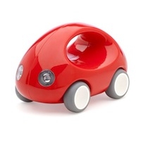 A pushable, rollable, graspable vehicle gets young drivers excited. The gracefully curving roof does double-duty as a handle and rubber coated wheels glide smoothly along any path.