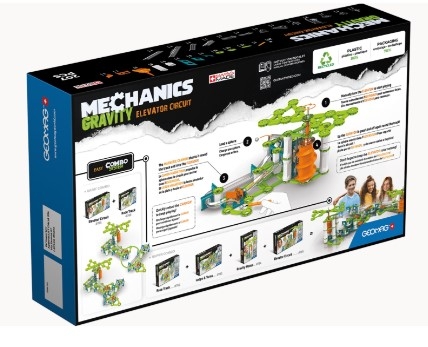 Made with recycled plastic, Geomag Mechanics Gravity Elevator Circuit Recycled 207 pcs construction platform combines the force of magnetism with mechanical construction. Geomag Mechanics Gravity Elevator Circuit Recycled 207 pcs stimulates children's creativity, inventiveness and a hands-on approach to problem-solving and will introduce the concepts of an interactive magnetic marble run, a cannon mechanism and an elevator.