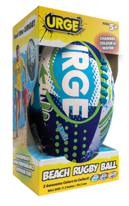 The URGE 11.5-inch neoprene rugby ball is perfect for playing at the park, beach, or backyard! PLUS ... get it wet and watch as the fabric changes colour too - cool!